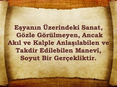 Netice olarak şunu vurgulamak istiyoruz ki: Eşyanın üzerindeki sanat, gözle görülmeyen, ancak akıl ve kalple anlaşılabilen ve takdir edilebilen manevî, soyut bir gerçekliktir.