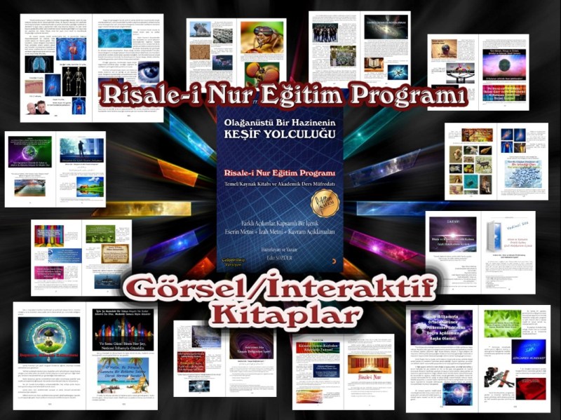 Daha sonra programda kullanılan görsel materyallerin, bir sanatçı hassasiyetiyle nakış nakış işlenerek alanında dünyada bir ilk olan görsel/interaktif kitaplara dönüştürülmesiyle çok boyutlu bir hizmet ve eğitim projesi olarak kullanıma sunulmuştur. Ve işte “kitap metnini ve çok sayıda görsel ve video kullanılan ve kitabın tamamının işlendiği seminer videolarını nasıl bir araya getiririz ve birlikte servis ederiz” sorusunun cevabının, bizi alanında daha önce hiç teşebbüs edilmemiş bir çalışmaya götürdüğü ve aşağıda örnek sayfalarını gördüğünüz Görsel/İnteraktif Kitaplarımız!