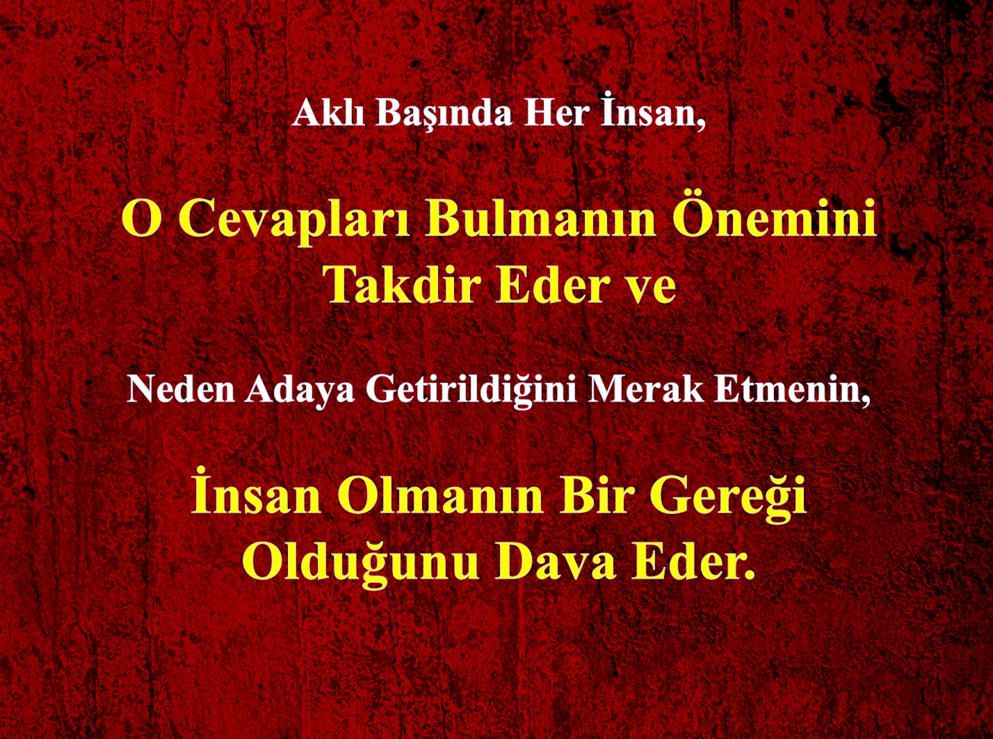 Şimdi sizi insanın, hayatın, kâinatın ve dinin yüksek hakikatini keşfedeceğimiz, bulunduğumuz dünyayı anlamlandıracağımız, hiç olmadığı kadar şaşırtıcı bir farkındalık kazanacağımız, muhteşem bir zihinsel yolculuğun ve hayret verici gerçeklerin kapısından içeriye davet ediyoruz, lütfen içeriye buyurun!