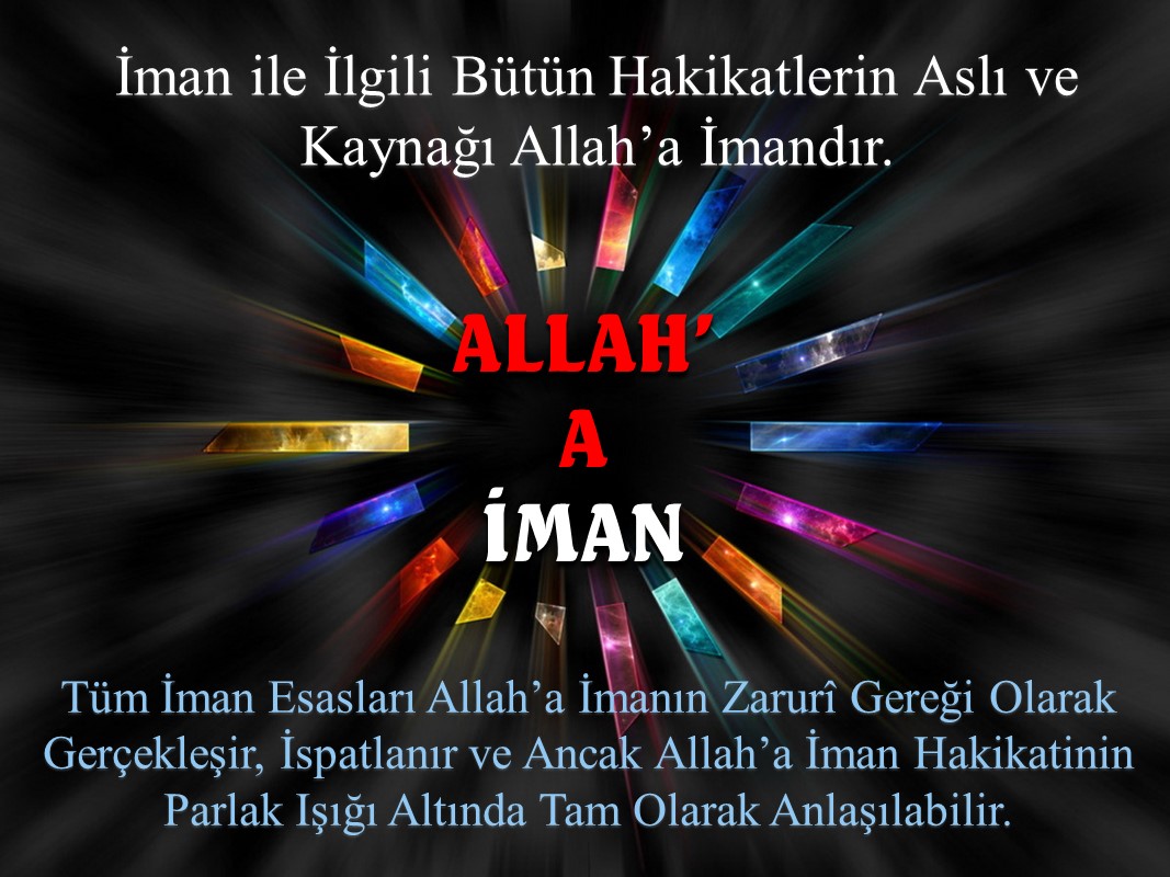 İman ile ilgili bütün hakikatlerin ve diğer iman esaslarının aslı ve kaynağı Allah’a imandır ve tüm iman esasları birbirinden ayrılmaz bir bütündür.