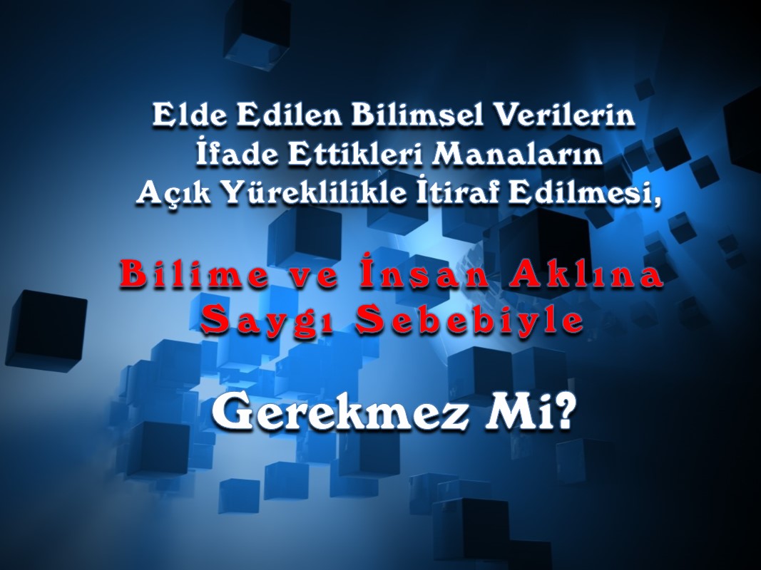 Şimdi soruyoruz: Elde edilen bilimsel verilerin ifade ettikleri manaların açık yüreklilikle itiraf edilmesi, bilime ve insan aklına saygı sebebiyle gerekmez mi?