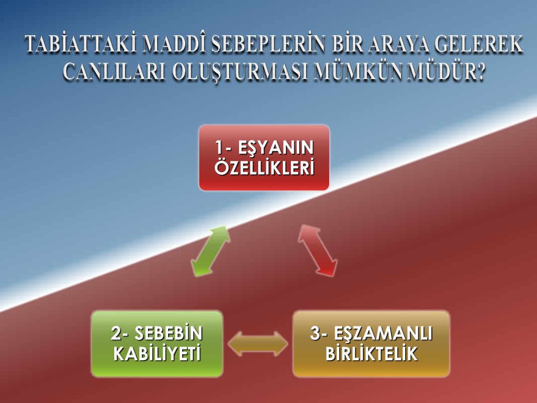 Şimdi tabiattaki maddî sebeplerin bir araya gelerek canlıları ve canlılığı oluşturması mümkün müdür, bunu inceleyeceğiz.
