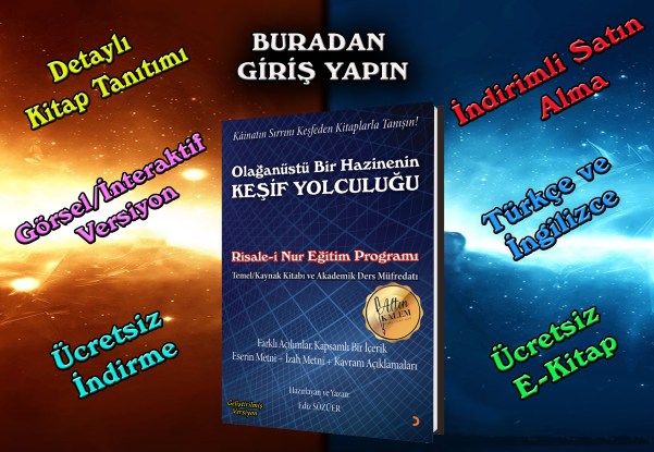 İşte, içinde bilime ve öğrenmeye dair, karşı koyulmaz bir merak ve tutku bulunan insanlar için manevî bir ilim hazinesi olan bu eserlerin adı: Risale-i Nur’dur. Sizi büyük bir hazinenin kapısından içeriye davet ediyoruz ve anahtarını da bu çalışmamızla elinize veriyoruz. Lütfen içeriye buyrun!